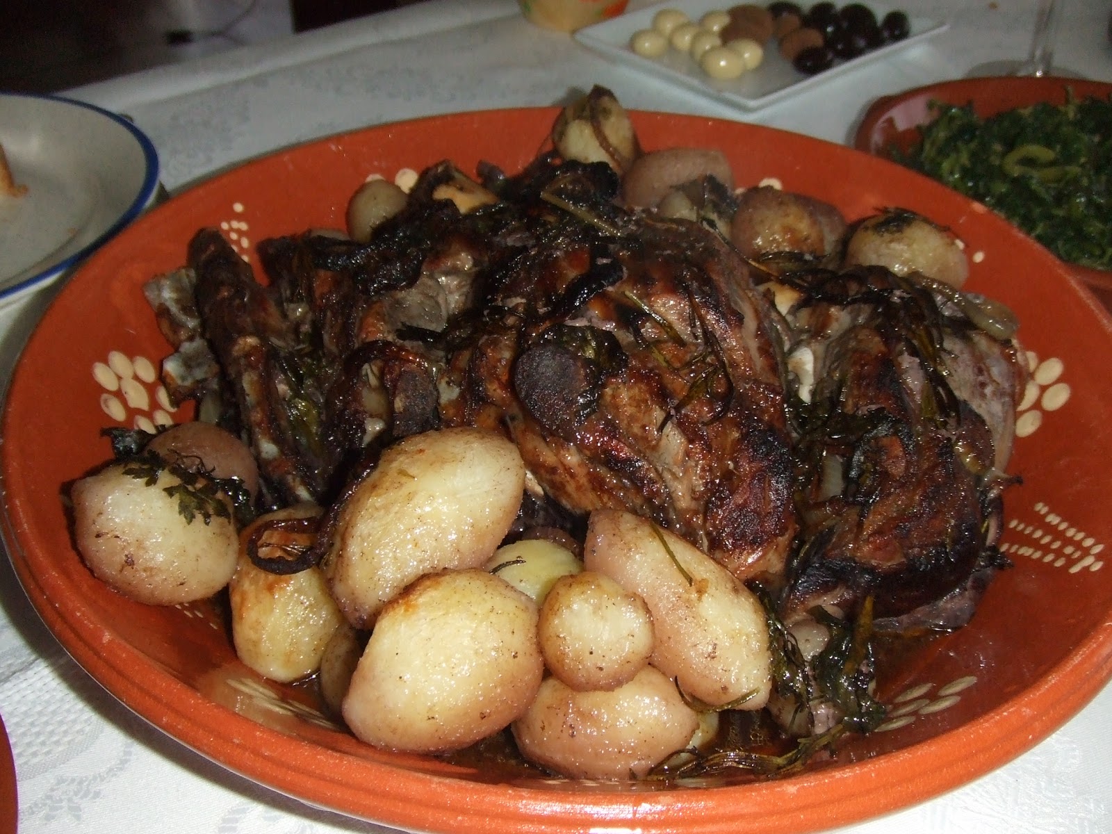 Este foi o borrego que servi no almoço de Páscoa, fica tenrinho, delicioso! Como não gosto muito de carne gorda, primeiro retirei o excesso de pele e gordura da carne e estava perfeito! É dos poucos pratos que preparo de um dia para o outro, mas é fantástico!