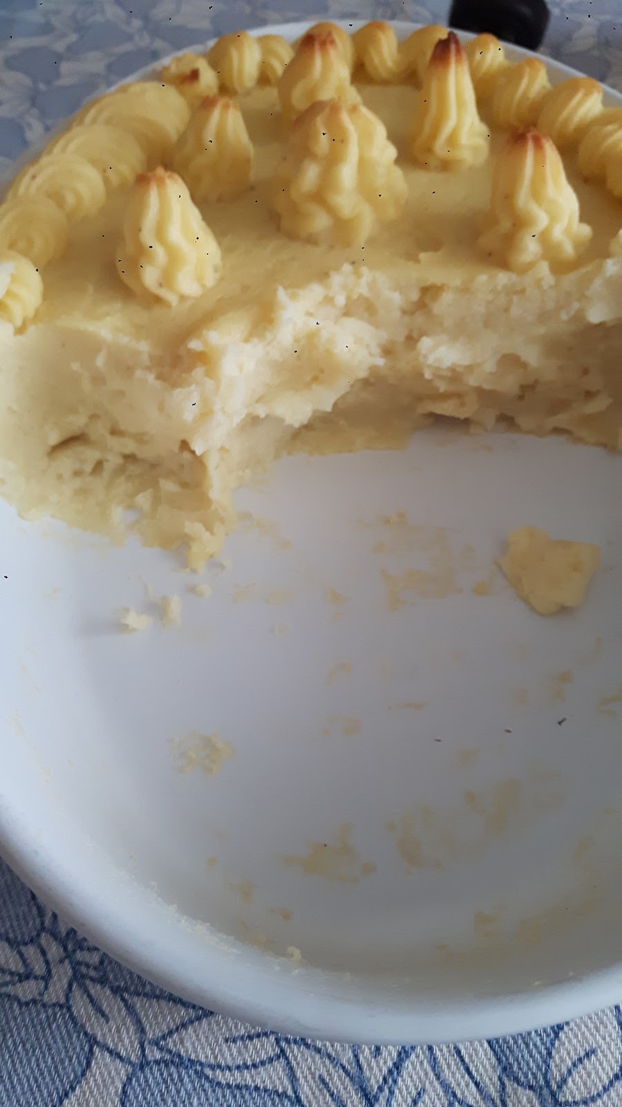 Colocar o puré numa assadeira pequena, reservando uma parte para a decoração.